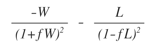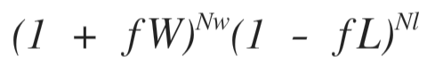 소유 금액에서 f 비율만큼 배팅하여 승리하면 소유 금액은 (1 + f*W) 배가 된다. 반면, 소유 금액에서 f 비율만큼 배팅하여 패배하면 소유 금액은 (1 - f * L) 배가 된다.