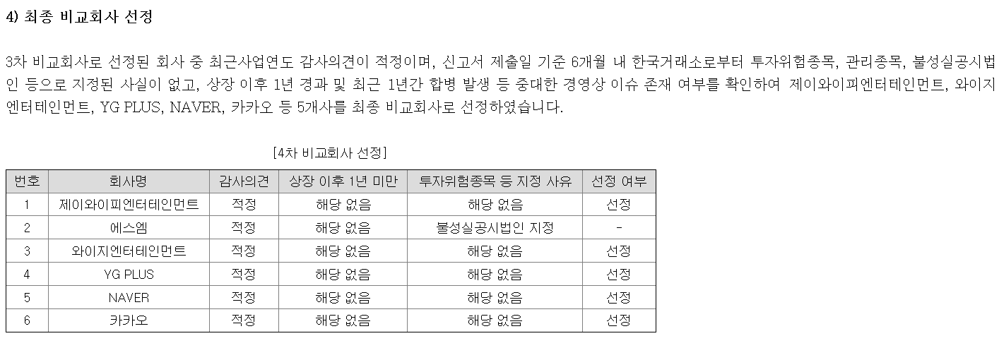 거기에 공모가 산정을 위한 비교기업에 대한 설명을 읽는데..