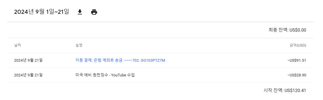 지급 기준액이 넘으면, 보통 20일에서 25일 사이에 애드센스 수익이 지급된다.