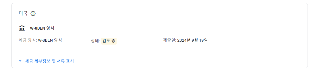 - 미국 세금 정보 등록 후, 검토가 완료되기까지 며칠 걸릴 수 있음.