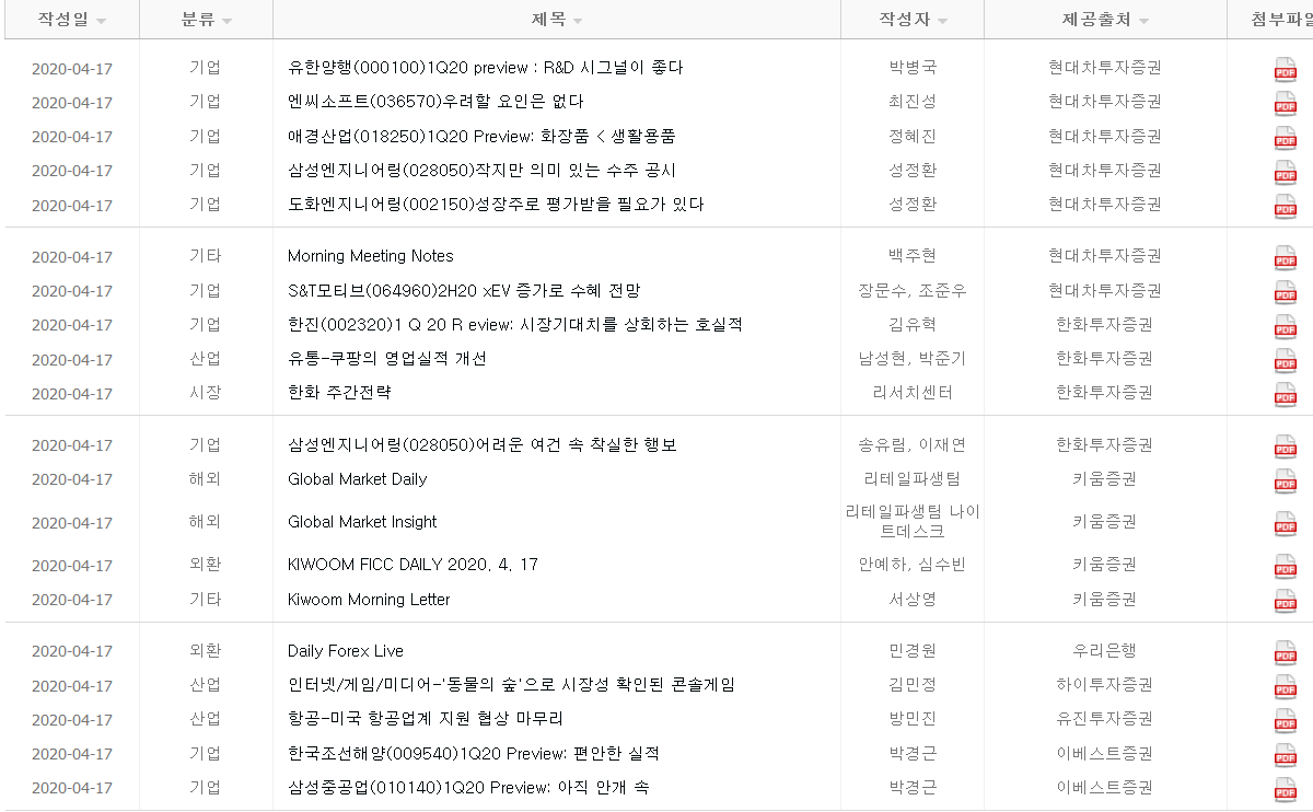 증권사 hts에서는 보통 해당 증권사에서 나온 보고서밖에 제공하지 않는다. 게다가 기업 보고서와, 시장 보고서, 산업 보고서, 경제 보고서 등을 분야별로 나눠서 한 번에 제공하는 시스템이 잘 갖춰져있지 않다.